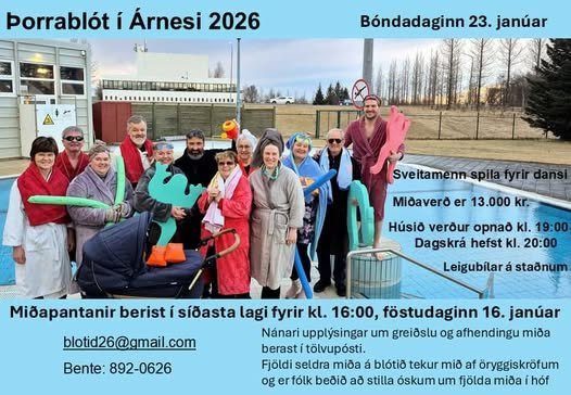 Miðapantanir þurfa að berast fyrir kl 16 föstudaginn 16 janúar á netfangið blotid26@gmail.com